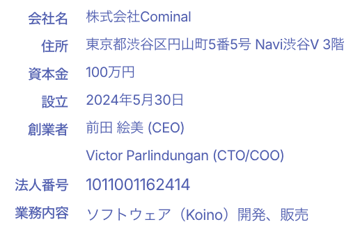 株式会社Cominal was started in Kanagawa prefecture with 1 million yen Capital